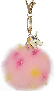 Kanggest Porte Clés Licorne Porte-clés/Trousseau en Alliage Pendentif Pompon Porte Clef pour Femme Sac Porte Cle pour Voiture/Téléphone/Mariage/Pochette(Rose)