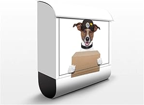 Boîte aux lettres Dog With Package | 39x46x13cm boîtes postales boîte aux lettres au format XXL film décoratif porte-journaux fente à lettres, Dimension: 46cm x 39cm