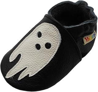 Chaussons pour bébé - En cuir souple - Avec semelles en daim - Plusieurs styles - - Noir fantôme., 25/26 EU