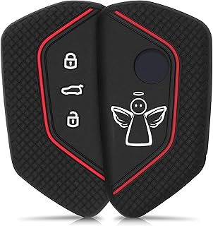 kwmobile Accessoire Clé de Voiture Compatible avec VW Golf 8 3-Bouton - Coque de Protection Souple en Silicone - Ange Blanc-Noir