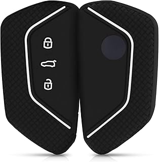 kwmobile Accessoire Clé de Voiture Compatible avec VW Golf 7 MK7 3-Bouton - Coque de Protection Souple en Silicone - numéro 1 Noir-Blanc-Blanc