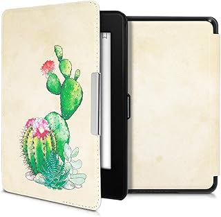 kwmobile Étui liseuse Compatible avec Amazon Kindle Paperwhite (10. Gen - 2018) - Housse avec Rabat magnétique en Simili Cuir - Cactus Vert-Fuchsia-Sable