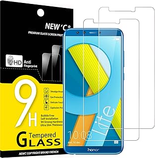 NEW'C Lot de 2, Verre Trempé Compatible avec Honor 9 Lite, Film Protection écran sans Bulles d'air Ultra Résistant (0,33mm HD Ultra Transparent) Dureté 9H Glass