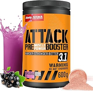 Body Attack Pre Workout Booster – Extrem hochdosierter Workout-Booster für alle Sportler & Athleten – speziell entwickelt für Bodybuilding, Kraftsport und Fitness (Johannisbeer-Cassis)