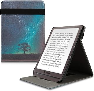 kwmobile Étui pour liseuse Compatible avec Pocketbook InkPad 3/3 Pro/Color - Housse Rabat liseuse en Simili Cuir Arbre Cosmique Bleu-Gris-Noir