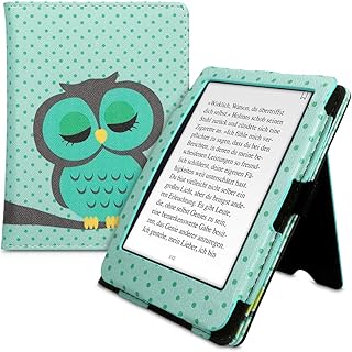 kwmobile Étui pour liseuse électronique Compatible avec Kobo Clara HD - Housse Protection Chouette endormie Turquoise-Marron-Menthe glaciale