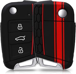 kwmobile Accessoire Clé de Voiture Compatible avec VW Golf 7 MK7 3-Bouton - Coque de Protection Souple en Silicone - Bande de Couleur Rouge-Noir