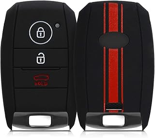 kwmobile Accessoire Clé de Voiture Compatible avec Kia Smartkey 3-Bouton - Coque de Protection Souple en Silicone - Bande de Couleur Rouge-Noir