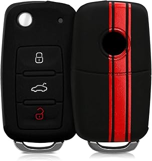 kwmobile Accessoire Clé de Voiture Compatible avec VW (Keyless Go Uniquement) 3-Bouton - Coque de Protection Souple en Silicone - Bande de Couleur Rouge-Noir