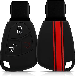kwmobile Accessoire Clé de Voiture Compatible avec Mercedes Benz 3-Bouton - Coque de Protection Souple en Silicone - Bande de Couleur Rouge-Noir