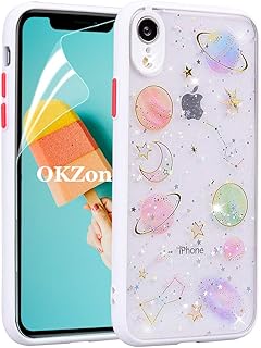 OKZone Coque pour iPhone XR (6,1 Pouces), [Série Bordure de Couleur] Transparent Mince Étui en Silicone Souple Brillante Bling Bling Glitter, Flexible Plein-Corps TPU de Protection (Blanc)