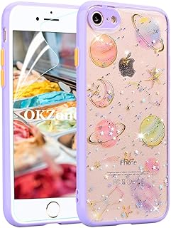 OKZone Coque pour iPhone 8 / iPhone 7 (4,7 Pouces), [Série Bordure de Couleur] Transparent Mince Étui en Silicone Souple Brillante Bling Bling Glitter, Flexible Plein-Corps TPU de Protection (Violet)