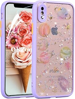 OKZone Coque pour iPhone XS/iPhone X (5,8 Pouces), [Série Bordure de Couleur] Transparent Mince Étui en Silicone Souple Brillante Bling Bling Glitter, Flexible Plein-Corps TPU de Protection (Violet)